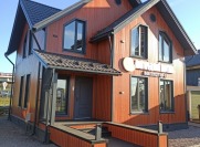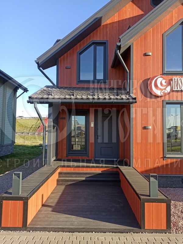 Каркас, стойки (45×95мм\ 45×145мм) строганые камерной сушки, фронтоны обиваются снаружи по контробрешетке 20×40мм (вентилируемый фасад) сухой вагонкой (толщина вагонки 16мм);