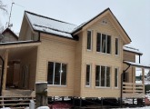 Каркас, стойки (45×95мм\ 45×145мм) строганые камерной сушки, фронтоны обиваются снаружи по контробрешетке 20×40мм (вентилируемый фасад) сухой вагонкой (толщина вагонки 16мм);