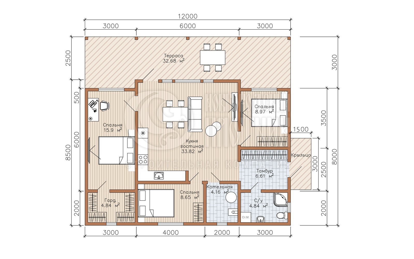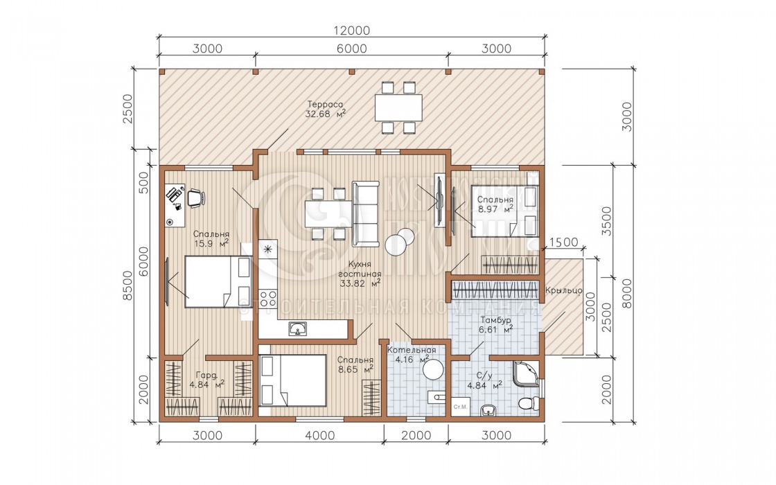 ПЕРЕГОРОДКИ Строганный профилированный брус 90×140мм камерной сушки, без утеплителя;