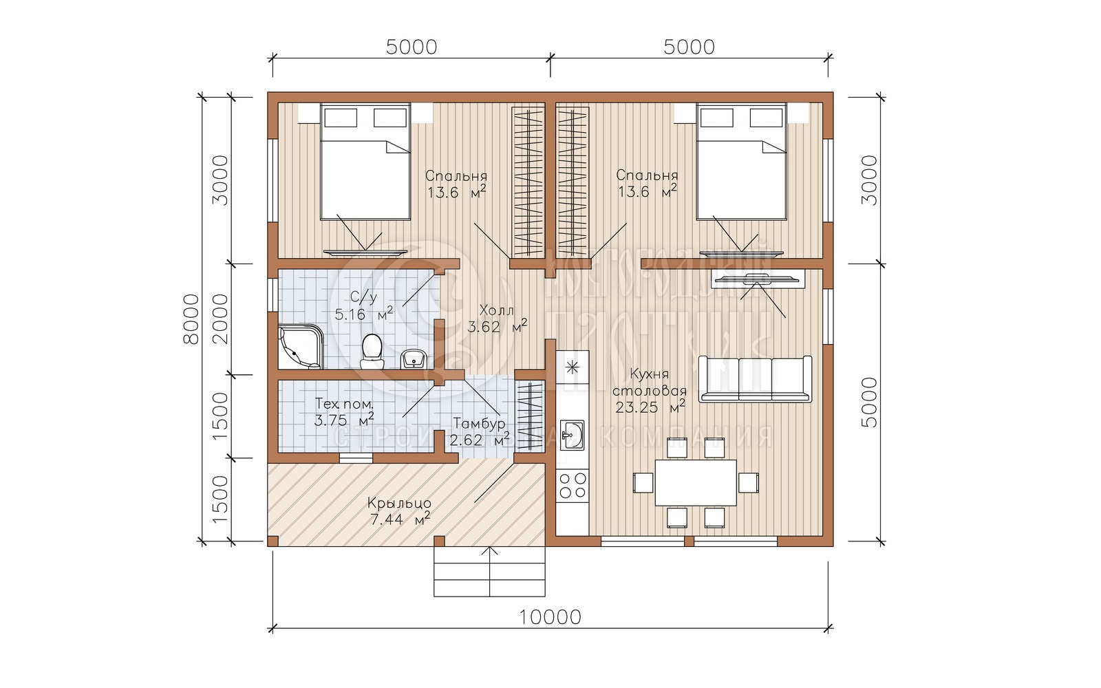 ПОТОЛКИ Высота потолка — 2,5м (+/-5см) — 19 рядов бруса, фронтон каркасный;