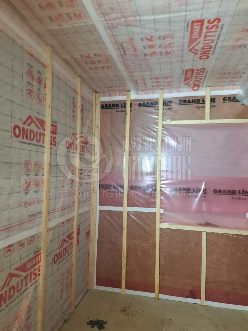 В декабре 2025г. завершилось строительство каркасного дома на основе проекта Д-37 (перепланировка плюс зашили балкон). Каркас дома 150мм выполнен из сухой строганой доски, снаружи и внутри обшит имитацией бруса, потолки вагонкой. Наружная имитация покрашена в заводских условиях. Утепление стен, полов и потолков - Роквул 150мм. Окна ПВХ двухкамерные. Кровля металлочерепица. Дополнительно выполнено антисептирование основания.