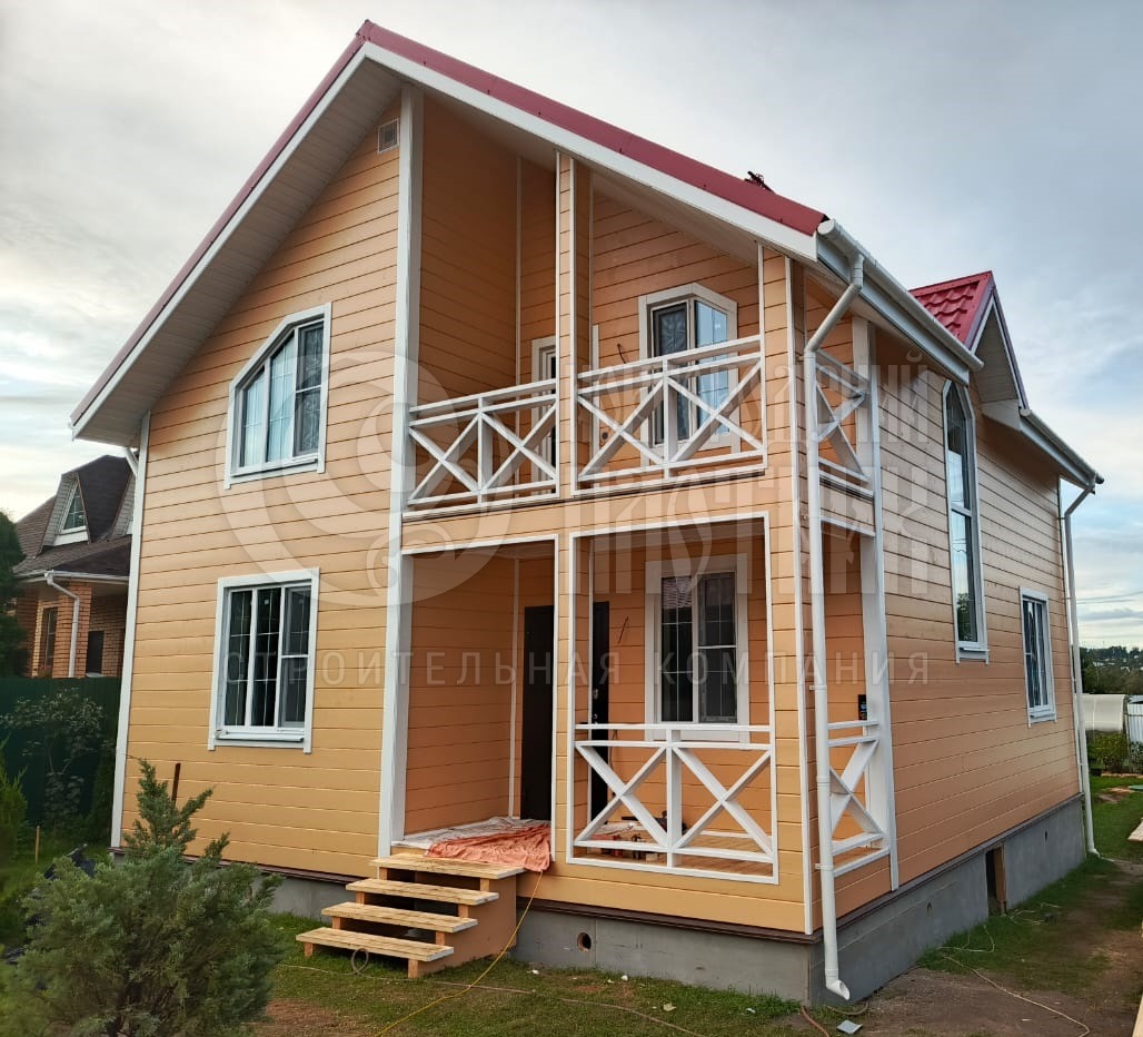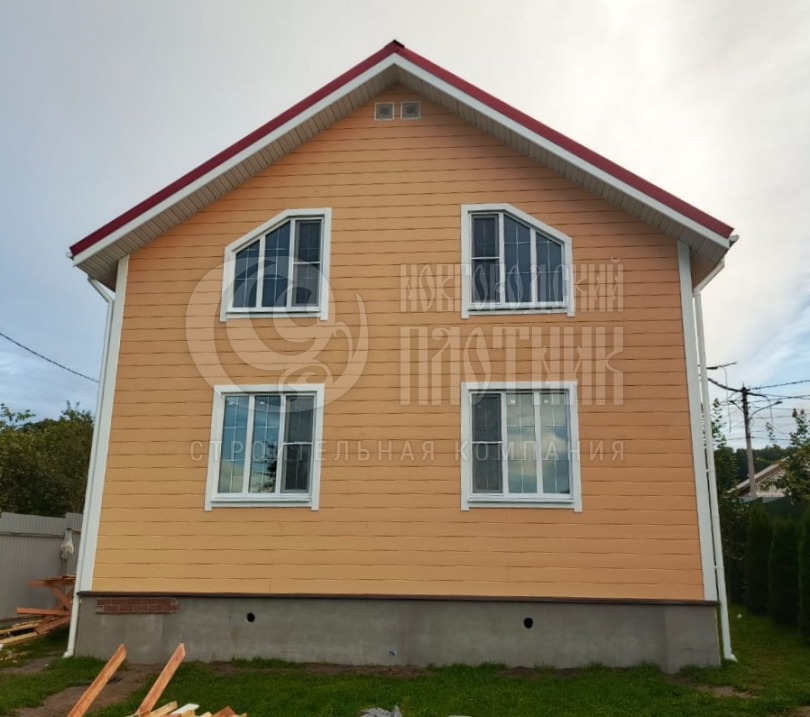 В августе 2025г. завершилось строительство каркасного дома по проекту Д-72. Сухой строганый каркас 150мм снаружи и внутри обшит имитацией бруса, снаружи имитация покрашена в заводских условиях. Потолок первого этажа без подшивки, второго этажа обшит вагонкой. Утепление стен, полов и потолков - Роквул 150мм. Окна ПВХ выполнены под заказ. Кровля металлочерепица. Дополнительно выполнено антисептирование основания, проложена сетка от грызунов.