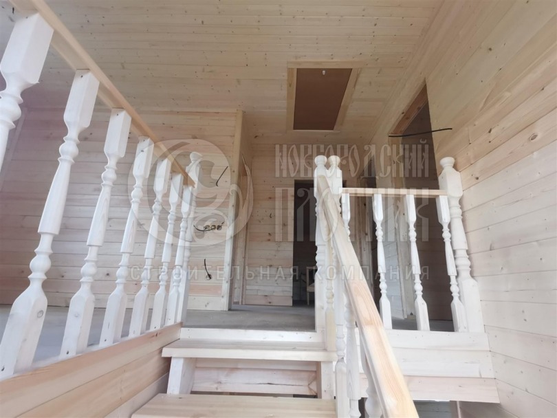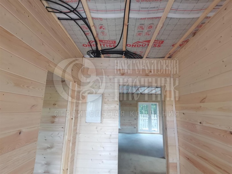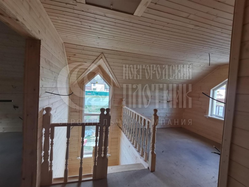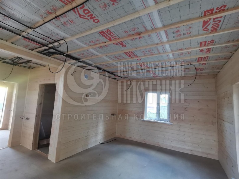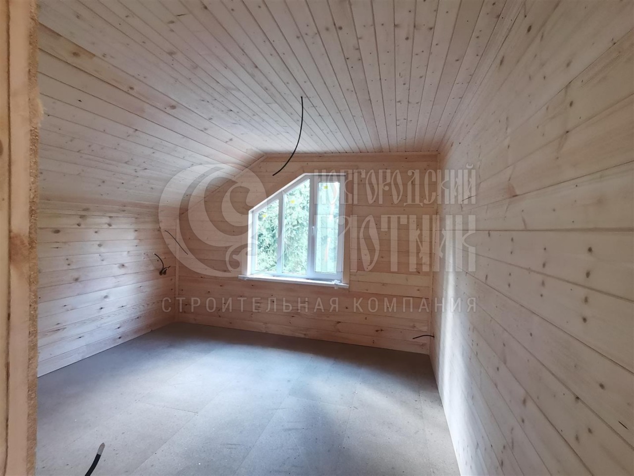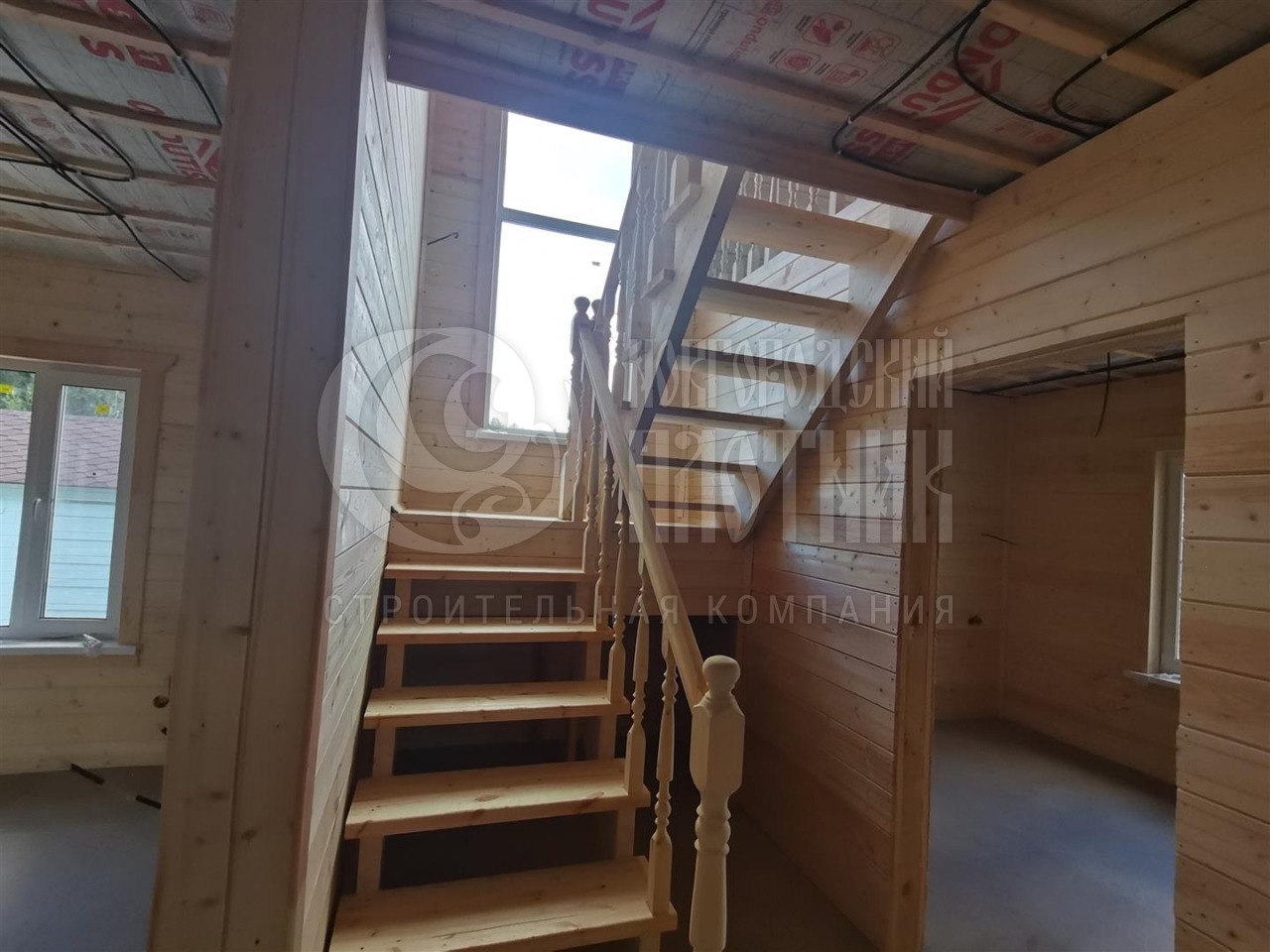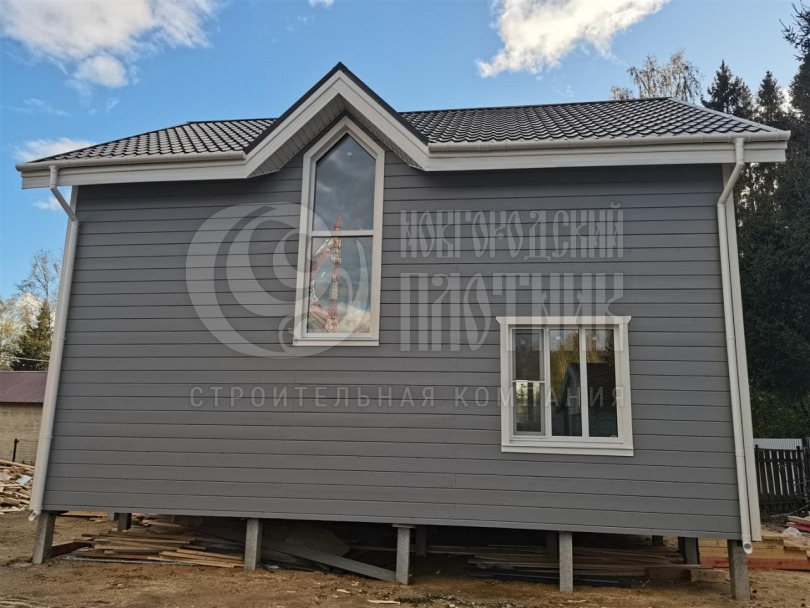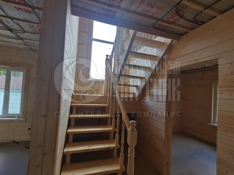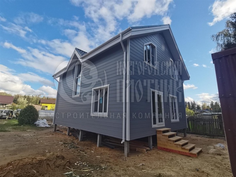 Каркасный дом в полтора этажа размером 8х9м плюс крыльцо построен по проекту Д-19 (аналог проекта Д-72, но без балкона и террасы). Сухой строганый каркас 200мм снаружи и внутри обшит имитацией бруса, снаружи и имитация в заводской покраске. Потолки 1-го этажа натяжные, второго - вагонка камерной сушки 16мм. Утепление стен, полов и потолков - Роквул 200мм. Окна ПВХ выполнены под заказ. Кровля - металлочерепица. Двери все заказные, входная с терморазрывом, межкомнатные - экошпон.