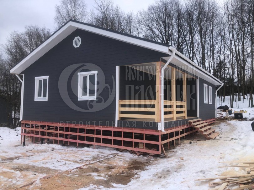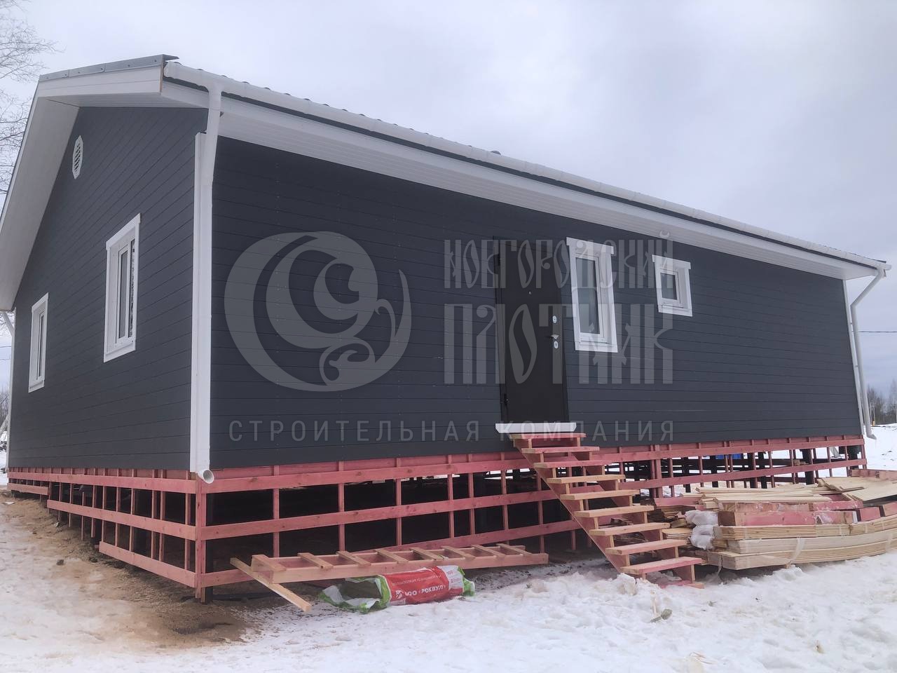 В феврале 2026г. завершилось строительство каркасного дома по проекту Д-3. Сухой строганый каркас 200мм снаружи и внутри обшит имитацией бруса, потолки вагонкой (толщина вагонки 16мм). Весь каркас дополнительно антисептирован. Наружная имитация покрашена в заводских условиях. Утепление стен, полов и потолков - Роквул 200мм. Окна стандартные двухкамерные. Кровля металлочерепица. В полах проложена сетка от грызунов.