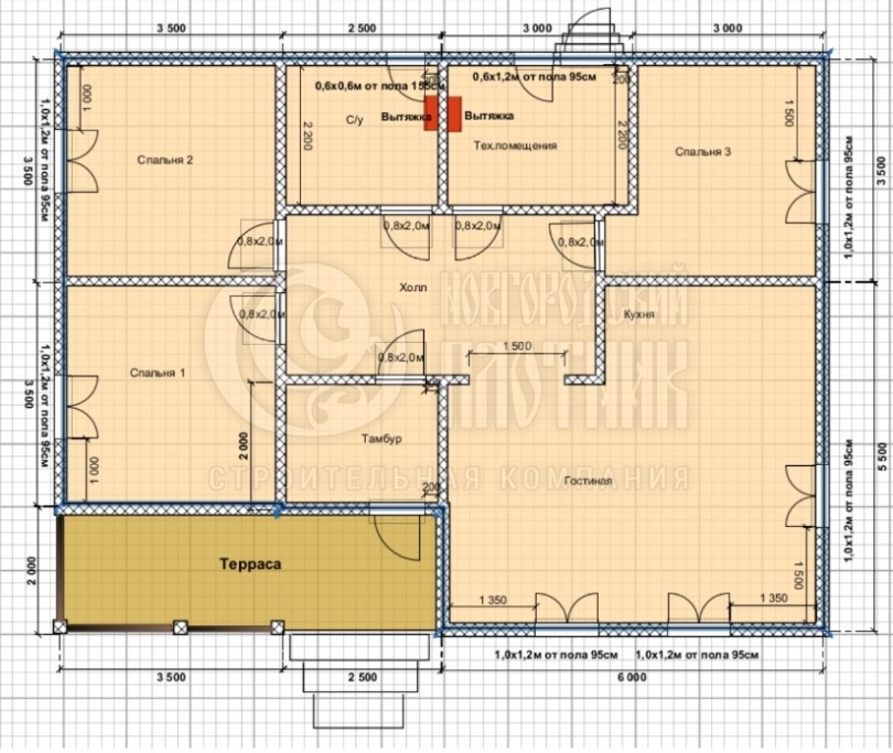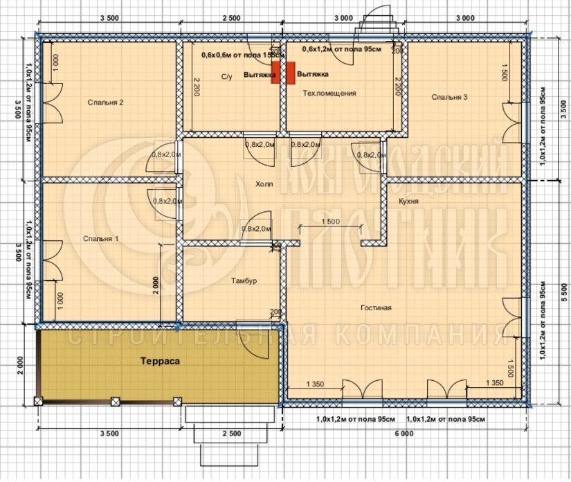 Одноэтажный каркасный дом 9х12м (проект Д-3)