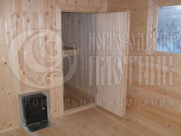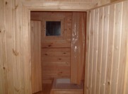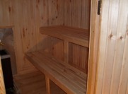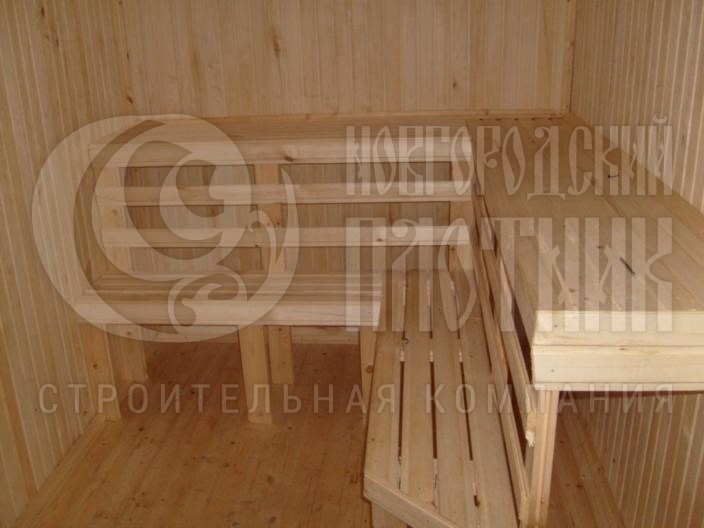 ОТДЕЛКА ПАРНОГО ОТДЕЛЕНИЯ Стены и потолок обшиваются осиновой вагонкой, двухярусные полки (полок осиновый), теплоизоляция (фольга);