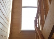 Подшиваются сухой вагонкой (толщина вагонки 16мм); высота потолка 1-го этажа — 2,5м (+/-5см) — 19 рядов бруса, высота потолка мансарды — 2,4м (+/-5см), простенок 11 рядов бруса — 1,5м (+/-5см), фронтон каркасный; утепление — каменная вата ROCKWOOL толщиной 150мм, с пароизоляцией (внутри) и ветрозащитой (снаружи);