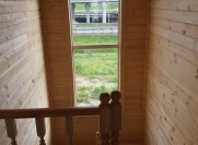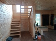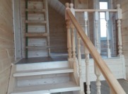 ЛЕСТНИЦА Деревянная: ступени выполняются из половой доски 36мм, тетива — из бруса 90×140мм, перила и балясины точеные;