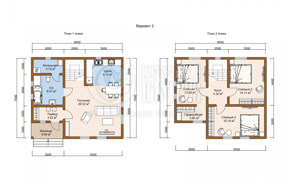 ПЕРЕГОРОДКИ 1-ГО ЭТАЖА Строганный профилированный брус 90×140мм камерной сушки, без утеплителя;