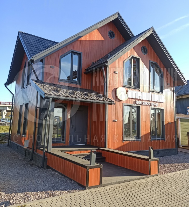 Каркас, стойки (45×95мм\ 45×145мм) строганые камерной сушки, фронтоны обиваются снаружи по контробрешетке 20×40мм (вентилируемый фасад) сухой вагонкой (толщина вагонки 16мм);