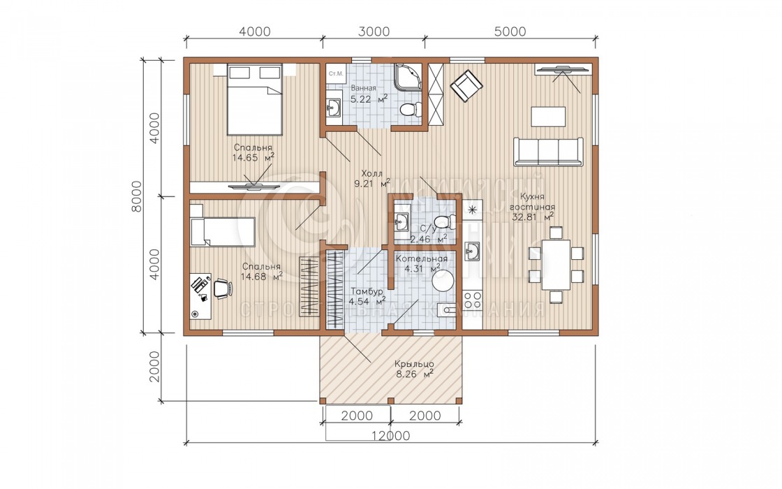ПЕРЕГОРОДКИ Строганный профилированный брус 90×140мм камерной сушки, без утеплителя;