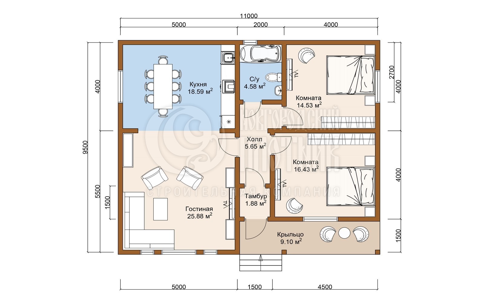 ПОТОЛКИ Высота потолка — 2,5м (+/-5см) — 19 рядов бруса, фронтон каркасный;