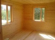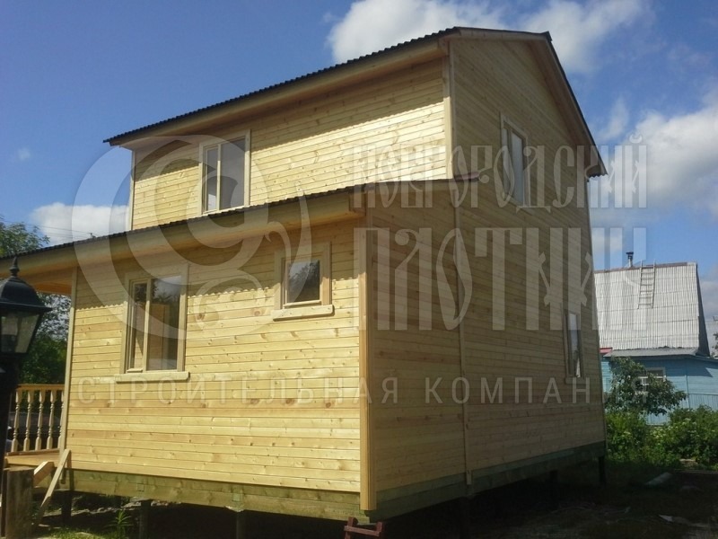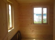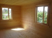 Стены каркаса, ригеля, укосины, стойки — строганая доска 45×145мм камерной сушки с шагом 58-59см обиваются снаружи по контробрешетке 20×40мм (вентилируемый фасад) и внутри по стоякам вагонкой камерной сушки (толщина вагонки 16мм). Перегородки каркаса, ригеля, укосины, стойки — строганая доска 45×95мм камерной сушки с шагом 58-59см без утеплителя, обшиты вагонкой камерной сушки (толщина вагонки 16мм). Утепление стен и потолка — Роквул толщиной 150мм с пароизоляцией (внутри) и ветрозащитой (снаружи);