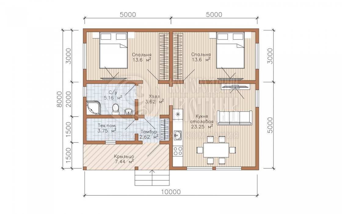 ПОТОЛКИ Высота потолка — 2,5м (+/-5см) — 19 рядов бруса, фронтон каркасный;