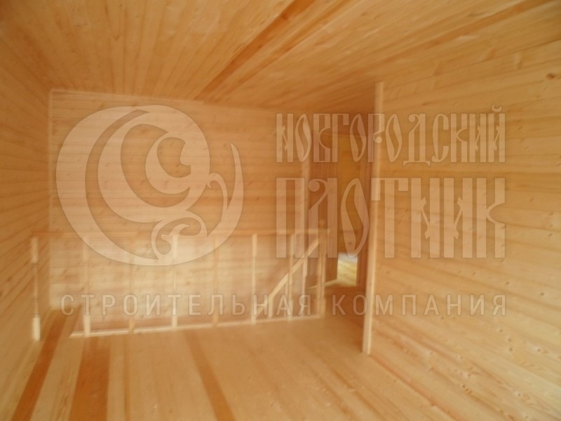 Стены каркаса, ригеля, укосины, стойки — строганая доска 45×145мм камерной сушки с шагом 58-59см обиваются снаружи по контробрешетке 20×40мм (вентилируемый фасад) и внутри по стойкам вагонкой камерной сушки (толщина вагонки 16мм). Перегородки каркаса, ригеля, укосины, стойки — строганая доска 45×95мм камерной сушки с шагом 58-59см без утеплителя, обшиты вагонкой камерной сушки (толщина вагонки 16мм). Утепление стен и потолка — Роквул толщиной 150мм с пароизоляцией (внутри) и ветрозищтой (снаружи);