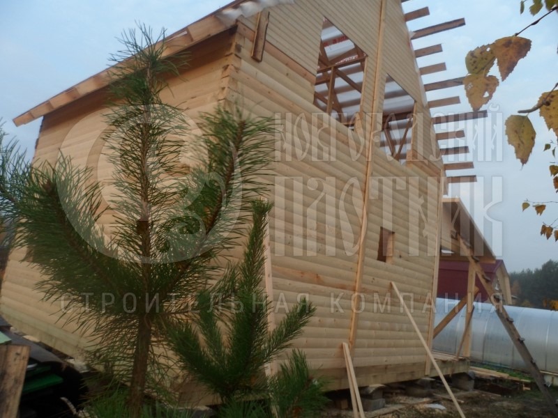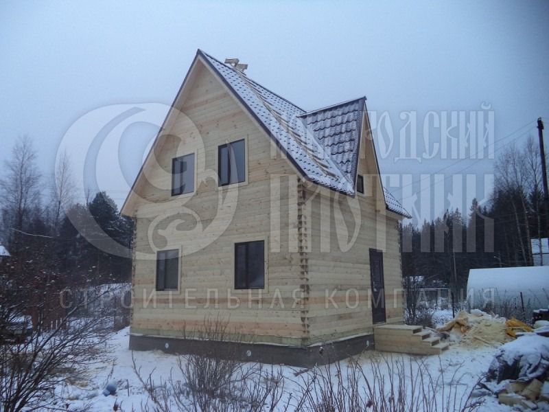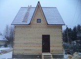 Стены каркаса, ригеля, укосины, стойки — строганая доска 45×145мм камерной сушки с шагом 58-59см обиваются снаружи по контробрешетке 20×40мм (вентилируемый фасад) и внутри по стоякам вагонкой камерной сушки (толщина вагонки 16мм). Перегородки каркаса, ригеля, укосины, стойки — строганая доска 45×95мм камерной сушки с шагом 58-59см без утеплителя, обшиты вагонкой камерной сушки (толщина вагонки 16мм). Утепление стен и потолка — Роквул толщиной 150мм с пароизоляцией (внутри) и ветрозащитой (снаружи);
