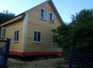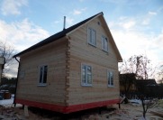 Подшиваются сухой вагонкой (толщина вагонки 16мм); высота потолка 1-го этажа — 2,4м (+/-5см) — 18 рядов бруса, высота потолка мансарды — 2,3м (+/-5см), простенок 8 рядов бруса — 1,1м (+/-5см), фронтон каркасный; утепление — Роквул толщиной 150мм, с пароизоляцией (внутри) и ветрозащитой (снаружи);