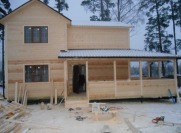 Каркас, стойки (45×95мм\ 45×145мм) строганые камерной сушки, фронтоны обиваются снаружи по контробрешетке 20×40мм (вентилируемый фасад) сухой вагонкой (толщина вагонки 16мм);