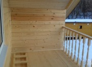 ЛЕСТНИЦА Деревянная: ступени выполняются из половой доски 36мм, тетива — из бруса 90×140мм, перила и балясины точеные;