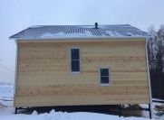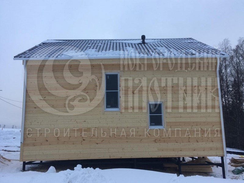 Каркас, стойки (45×95мм\ 45×145мм) строганые камерной сушки, фронтоны обиваются снаружи по контробрешетке 20×40мм (вентилируемый фасад) сухой вагонкой (толщина вагонки 16мм);