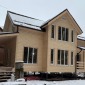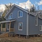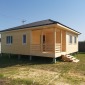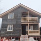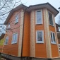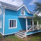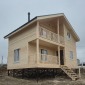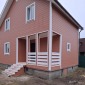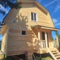 Каркасный дом по индивидуальному проекту заказчика построен из сухого строганого материала, стены 150мм, полы и потолки 200мм. Снаружи обшит имитацией бруса в заводской покраске, внутри без отделки. Окна ПВХ выполнены под заказ. Кровля металлочерепица (коричневая). Дополнительно выполнено антисептирование основания, в полах проложена сетка от грызунов.