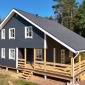 В ноябре 2025г завершилось строительство каркасного дома по проекту Д-23. Терраса перенесена на другую сторону дома. Каркас стен 150мм выполнен из сухого строганого материала 45х145мм, снаружи стены обшиты плитами Белтермо 20мм и блок-хаусом, внутри имитацией бруса, потолки - вагонкой 16мм. Утепление пола 1-го этажа Роквул 200мм, стены, межэтажка и потолок 2-го этажа утеплены в 150мм. Окна ПВХ выполнены под заказ. Кровля - металлочерепица. Дополнительно выполнено антисептирование основания, проложена сетка от грызунов.