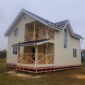 В июле 2025г завершилось строительство каркасного полутораэтажного дома на основе проекта Д-14 (был 6х7м, стал 7х8м). сухой строганый каркас снаружи обшит имитацией бруса в заводской покраске, внутри вагонка. Утепление стен, полов и потолков - Роквул 200мм. Кровля металлочерепица (серая). Все двери заказные. Балкон без ограждения (будет полностью застеклен).