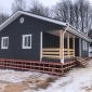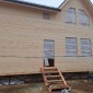 Сухой строганый каркас толщиной 200мм: снаружи имитация бруса в заводской покраске, внутри имитация бруса (по просьбе заказчика напилена, но не прибита, для проведения скрытых коммуникаций). Утепление стен, полов и потолков - Роквул 200мм. Потолки - вагонка камерной сушки 16мм. Окна ПВХ выполнены под заказ. Входная дверь утепленная с терморазрывом.