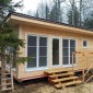 В сентябре 2025г. завершилось строительство небольшого дачного дома по проекту Д-7. Сухой строганый каркас снаружи и внутри обшит вагонкой камерной сушки (толщина вагонки 16мм). Стены утеплены в 150мм, полы/потолки в 200мм, утеплитель Роквул. Окан ПВХ двухкамерные, размеры стандартные. Кровля - ондулин "черепица" (имитирует металлочерепицу благодаря рисунку, по одной стоимости с ондулином). Дополнительно выполнено антисептирование основания (обвязка, лаги, черновой пол).