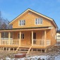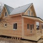 Весной этого года построен дом по проекту Д-3. Сухой строганый каркас снаружи обшит имитацией бруса в заводской покраске, внутри вагонка (стены и потолки). Утепление стен, полов и потолков - Роквул 200мм. Окна ПВХ двухкамерные. Кровля металлочерепица серого цвета.