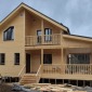 В июле 2025г. завершилось строительство каркасного дома на основе проекта Д-34 (зашили балкон и крыльцо, добавили крыльцо 2,5х2,5м). Сухой строганый каркас 150мм снаружи обшит плитами Белтермо и имитацией бруса с заводской покраской, внутри имитация бруса. Утепление стен - Роквул 150мм, полы и потолки утеплены в 200мм. Окна ПВХ выполнены под заказ. Покрытие крыши - металлочерепица.