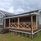 Дом 7х9м с террасой 2,5х9м построен по индивидуальному проекту заказчика. Каркас стен выполнен из сухой строганой доски, снаружи обшит ОСБ 9мм, внутри имитацией бруса. Утепление стен - Роквул 150мм, полы и потолки утеплены в 200мм. Окна ПВХ выполнены под заказ. Кровля ондулин "черепица". Дополнительно выполнено антисептирование основания, проложена сетка от грызунов.