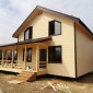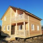 Строительство дома завершилось в мае 2019г по проекту Д-34 (в планировку внесены изменения, убрали балкон с террасой в пользу полезной площади дома, отдельно к дому пристроена терраса 2х8м). Каркас стен снаружи обшит имитацией бруса, внутри стены и потолок 1-го этажа обшиты ОСБ 9мм, стены второго этажа обшиты имитацией бруса, потолок вагонкой. Окна ПВХ двухкамерные выполнены под заказ (предоставлены Заказчиком). Кровля ондулин.
