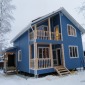 Строительство дома завершилось в январе 2019г. Каркас стен снаружи обшит ОСП и сайдингом Docke (цвет голубика), внутри имитация, на потолках - вагонка. Утепление стен - каменная вата Роквул толщиной 150мм, полы и потолки утеплены 200мм, перегородки 100мм. Окна ПВХ двухкамерные. Покрытие крыши металлочерепица Монтеррей.