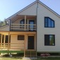 Строительство дома завершилось в июле 2018г. Каркас стен снаружи обшит блок-хаусом, внутри вагонкой, часть комнат плитами ОСП. Утепление стен - каменная вата Роквул толщиной 150мм. Окна ПВХ двухкамерные выполнены под заказ. Кровля металлочерепица. Лестница выполнена из сухого клееного материала.