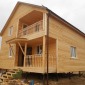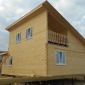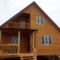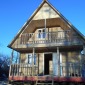 Каркасный дом с балконом построен в д.Бисерово по проекту Д-12. Снаружи стены обшиты имитацией бруса, внутри вагонкой. Утепление стен - каменная вата Роквул толщиной 150мм. Кровля профлист.