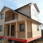 В апреле 2017г. в коттеджном поселке Лебединое завершилось строительство каркасного полутораэтажного дома 9х9м (дом 6*9м плюс открытая терраса 3*9м). Стены дома снаружи обшиты имитацией бруса, внутри вагонкой. Утепление стен - каменная вата Роквул толщиной 150мм. Полы и потолки утеплены той же ватой толщиной 200мм, перегородки (для шумоизоляции) в 50мм. Кровля металлочерепица Монтерей (цвет шоколад). Окна - двухкамерные ПВХ.