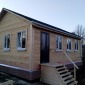 Строительство дома-бани завершилось в апреле 2017г. Стены 1-го и мансардного этажей выполнены из профилированного бруса 140х140мм (прямой профиль). Крыша односкатная, кровля металлочерепица (цвет вишня). Окна двухкамерные ПВХ.
