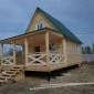 Одноэтажный каркасный дом построен на основе проекта бани Б-13. Стены снаружи обшиты имитацией бруса, внутри вагонкой. Утепление стен, полов и потолков - каменная вата Роквул толщиной 150мм. Фундамент - опорно-столбчатый из бетонных блоков 20*20*40см.