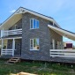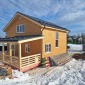 В конце декабря завершилось строительство каркасного дома по проекту Д-34. Сухой строганый каркас 200мм снаружи обшит сайдингом Дёке, внутри имитацией бруса, потолки вагонкой. Утепление стен, полов и потолков - Роквул 200мм. Окна ПВХ двухкамерные (размеры базовые). Кровля металлочерепица. Балкон и терраса увеличены на 60см. Дополнительно выполнено антисептирование основания, установлены вытяжки в санузлах.