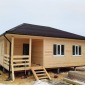 Одноэтажный каркасный дом построен по индивидуальному проекту заказчика. Каркас стен выполнен из СУХОЙ СТРОГАНОЙ доски, снаружи и внутри обшит имитацией бруса, потолки вагонкой. Утепление стен, полов и потолков - Роквул 200мм. Кровля - ондулин "черепица". Часть окон базовых размеров (ПВХ двухкамерные), часть окон и террасная дверь предоставлены заказчиком. Дополнительно выполнено антисептирование основания, установлена вытяжка в санузле.