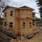 В декабре 2023г. завершилось строительство каркасного дома по проекту Д-25. Каркас стен выполнен из СУХОЙ СТРОГАНОЙ доски, снаружи и внутри обшит имитацией бруса, потолки вагонкой. Утепление стен, межэтажки, потолка второго этажа - Роквул 150мм, полы 1-го этажа утеплены в 200мм. Окна ПВХ двухкамерные. Кровля металлочерепица. Дополнительно выполнено антисептирование основания каркаса (обвязка, лаги, черной пол), установлена вытяжка. Строительные леса оставлены по просьбе заказчика.