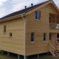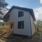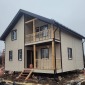 В марте 2023г завершилось строительство каркасного дома по проекту Д-34. Каркас дома - сухой, строганый, обработан антисептиком. Каркас стен снаружи обшит ОСБ и сайдингом Дёке, внутри имитацией бруса. Потолки подшиты вагонкой. Утепление стен - Роквул 150мм, полы и потолки утеплены в 200мм. Окна ПВХ двухкамерные. Кровля металлочерепица.