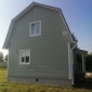 В октябре 2022г. завершено строительство каркасного дома по проекту Д-22 с небольшой перепланировкой. Балкон и терраса зашиты, добавлено крыльцо. Каркас 150мм снаружи обшит имитацией бруса, внутри вагонкой. Утепление стен и потолков - Роквул 150мм, полы 1-го этажа утеплены в 200мм. Кровля металлочерепица. Окна ПВХ двухкамерные.
