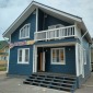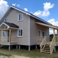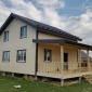 В июле 2022г завершилось строительство каркасного дома на основе проекта Д-34. За основу взята планировка от проекта Д-34, добавлено крыльцо и открытая терраса. Каркас стен толщиной 150мм снаружи обшит сайдингом, внутри: первый этаж имитацией бруса, второй вагонкой. Утепление стен, полов и потолков - каменная вата Роквул 150мм. Окна ПВХ двухкамерные. Кровля металлочерепица.