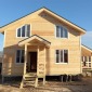 В мае 2022г. завершилось строительство каркасного дома с сайдингом по проекту Д-72. Каркас стен толщиной 150мм снаружи обшит ОСБ и сайдингом Дёке (предоставлен Заказчиком), внутри стены обшиты имитацией бруса, потолки вагонкой. Санузлы 1-го и второго этажей обшиты гипсокартоном. Утепление стен - каменная вата Роквул толщиной 150мм, полы и потолки утеплены в 200мм. Окна ПВХ выполнены под заказ. Внутренняя покраска стен и фигурное крыльцо выполнены отдельно, по договоренности с бригадой.