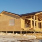 В марте 2022г. завершилось строительство каркасного одноэтажного дома без чистовой отделки. Каркас стен толщиной 150мм снаружи обшит ОСБ 9мм. Кровля металлочерепица.