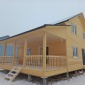 В мае 2022г. завершилось строительство каркасного дома на основе проекта Д-34. Балкон и терраса зашиты, в ходе строительства заказчиком была добавлена открытая терраса. Каркас стен толщиной 150мм снаружи и внутри обшит имитацией бруса, потолки подшиты вагонкой 16мм. Кровля металлочерепица. Окна ПВХ двухкамерные, часть окон выполнены под заказ и предоставлены заказчиком. Пристройка террасы, установка печи, покраска дома - выполнены отдельно, по договоренности с бригадой в процессе строительства.
