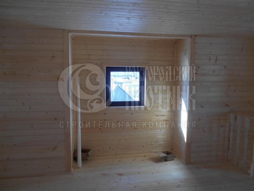 Строительство бани завершилось в марте 2017г. Баня построена по проекту Б-22. Стены 1-го этажа выполнены из профилированного бруса 140*140мм (профиль полуовал), фронтоны обшиты блок-хаусом. Окна - деревянные двухкамерные стеклопакеты. На мансарде добавлена "кукушка".