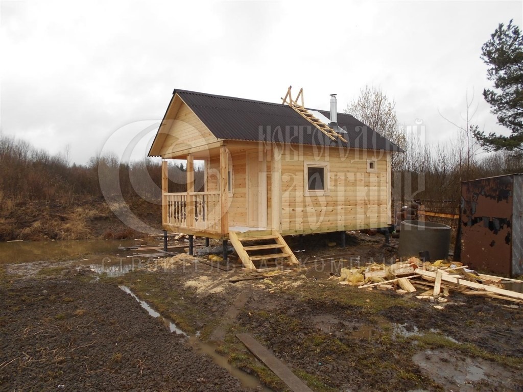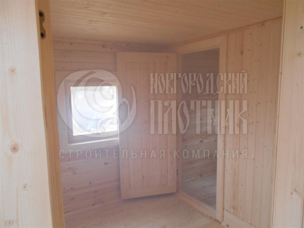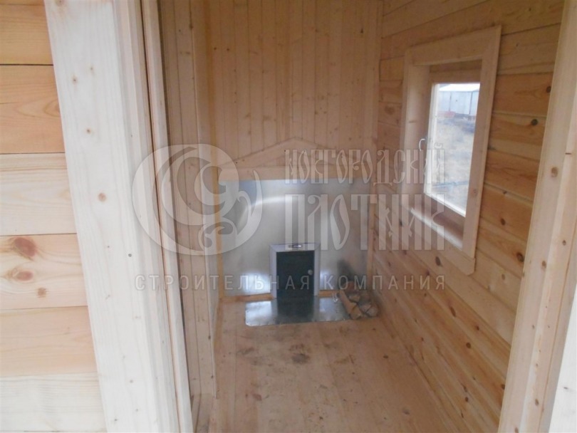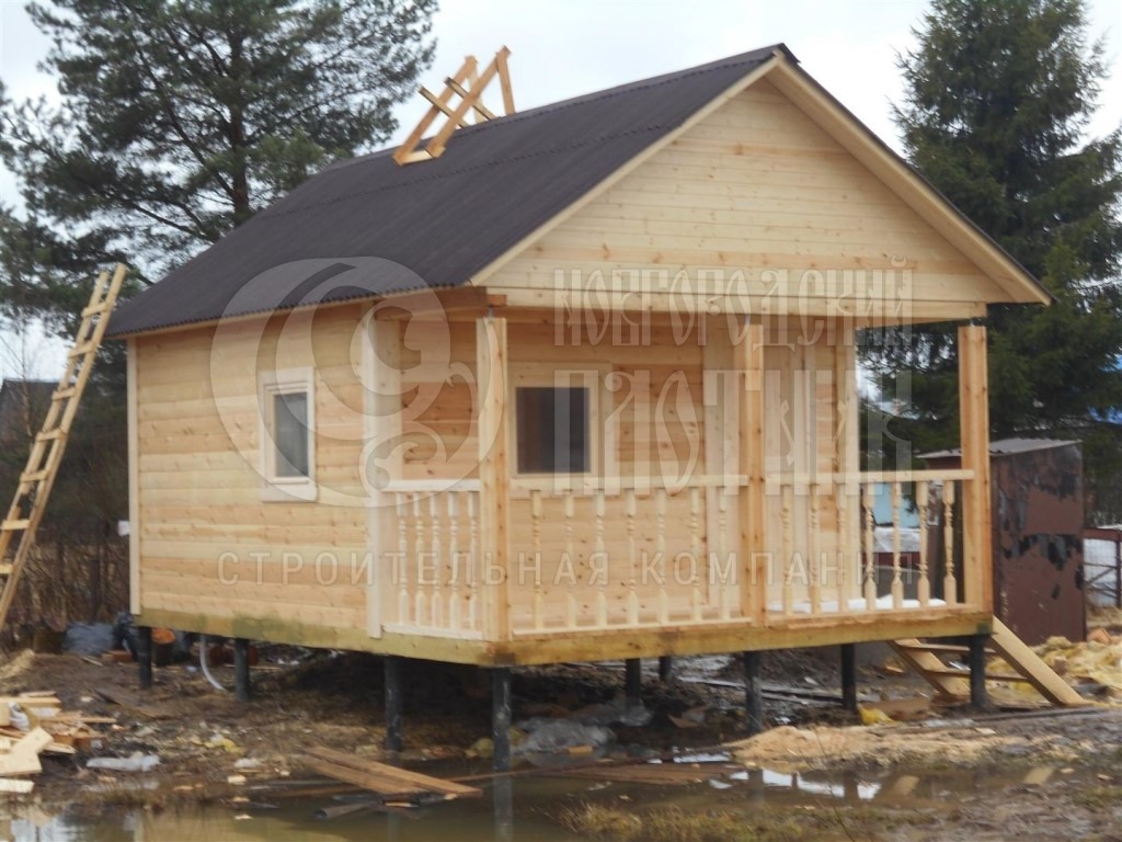 Баня 4х4,5м с террасой 1,5м построена из профилированного бруса 140х140мм (профиль полуовал), проект Б-6 без изменений.